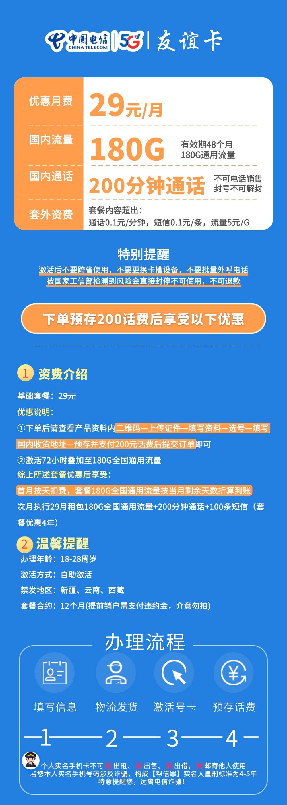 小小怪—下士 电信南平卡(免费办理)29包135G全国通用流量+30G定向流量+300分钟通话套餐有效期24个月,到期看政策续约全国发货,先激活后补卡,核查三要素办理年龄:18~60周岁点击下单 3天前 点赞 评论